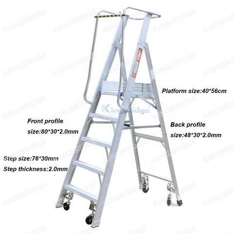 एल्यूमीनियम हल्के 4 पहियों बहु कार्यात्मक गोदाम विदेशी मोबाइल के साथ Foldable सीढ़ी सीढ़ी
